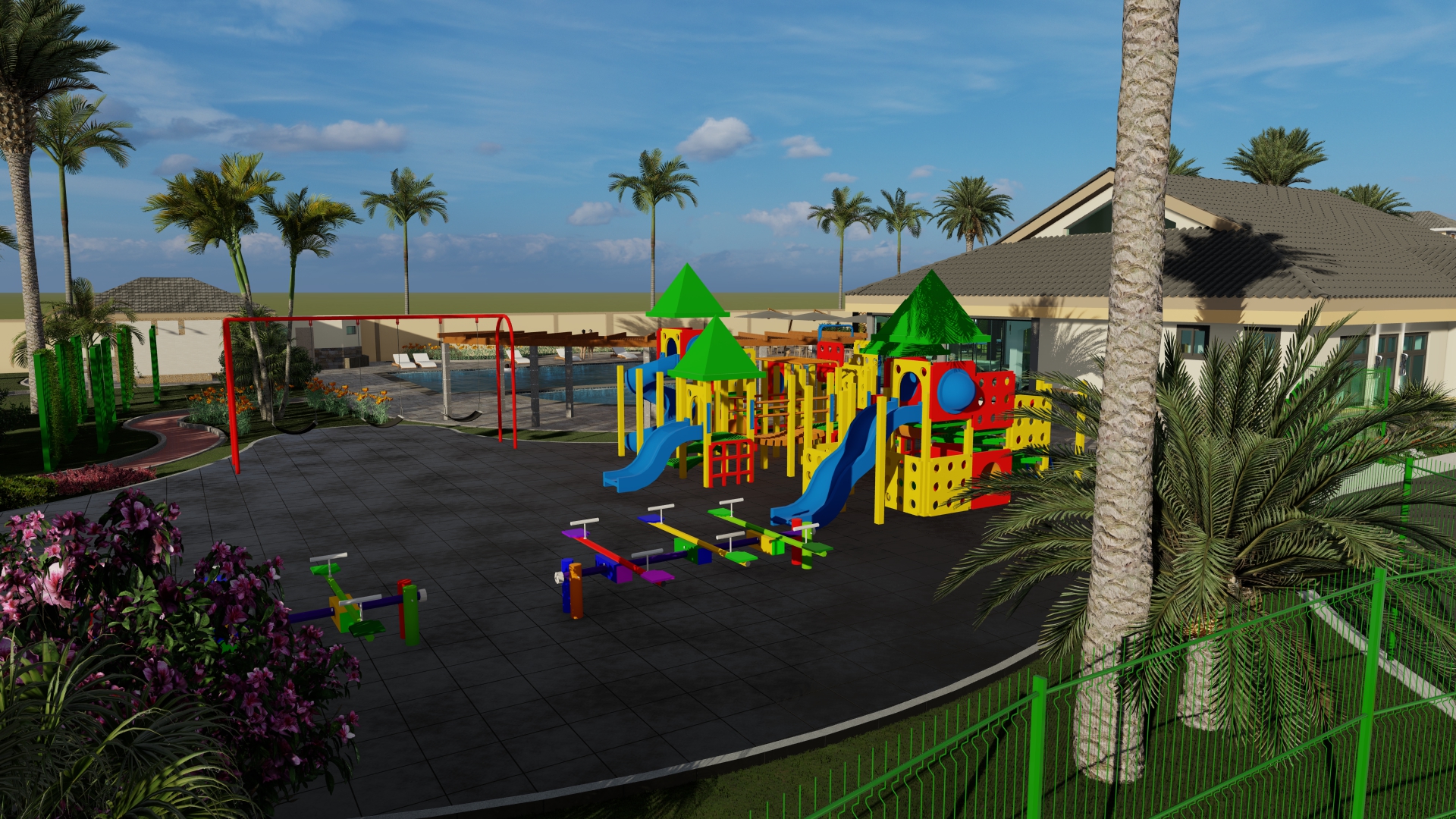 Brinda amplias áreas de esparcimiento, diversión y deporte, recreando un ambiente de relax y descanso incomparable para los niños y adultos, brindándole una experiencia de alto nivel y calidad de vida.